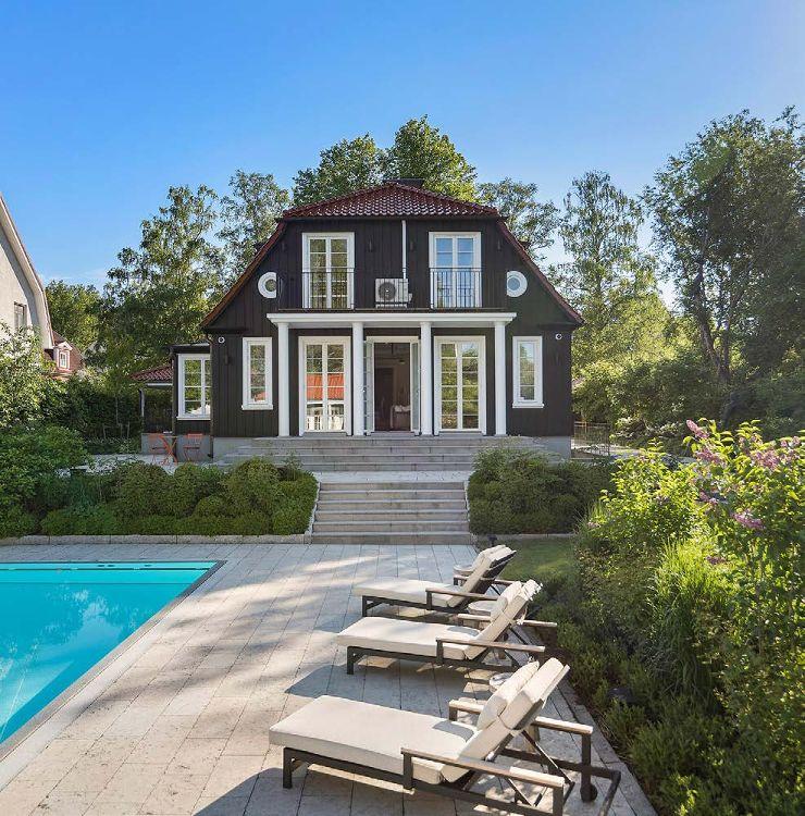 Villa på grönskande hörntomt med pool i Djursholm.