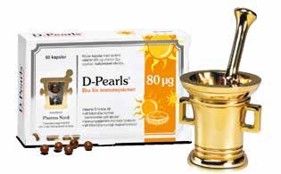 D-Pearls är små pärlor med 20, 38, 80 eller 125 mikrogram biologiskt aktivt vitamin D3. Det gör dem lätta att dosera beroende på årstid och kostvanor.