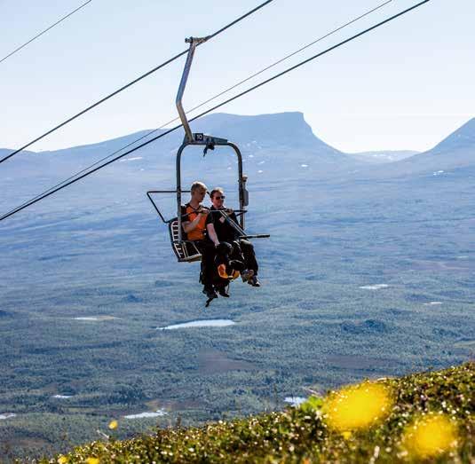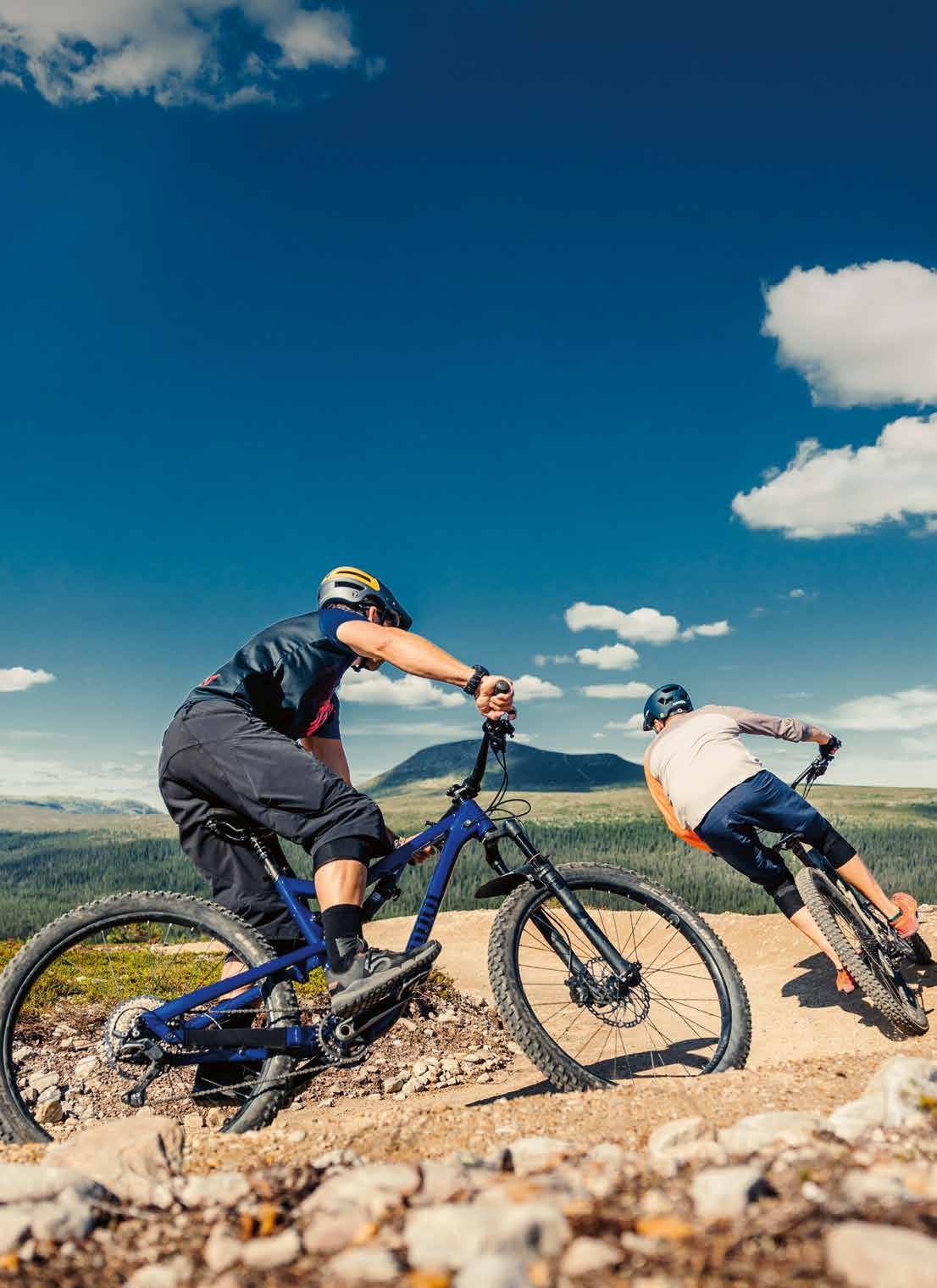 EN PERFEKT AKTIVITET att göra tillsammans är att ta åttasitsliften upp till toppen och ta med cyklarna. Därifrån går en grön cykelled, Kungsleden, ända ner till bergets fot.
