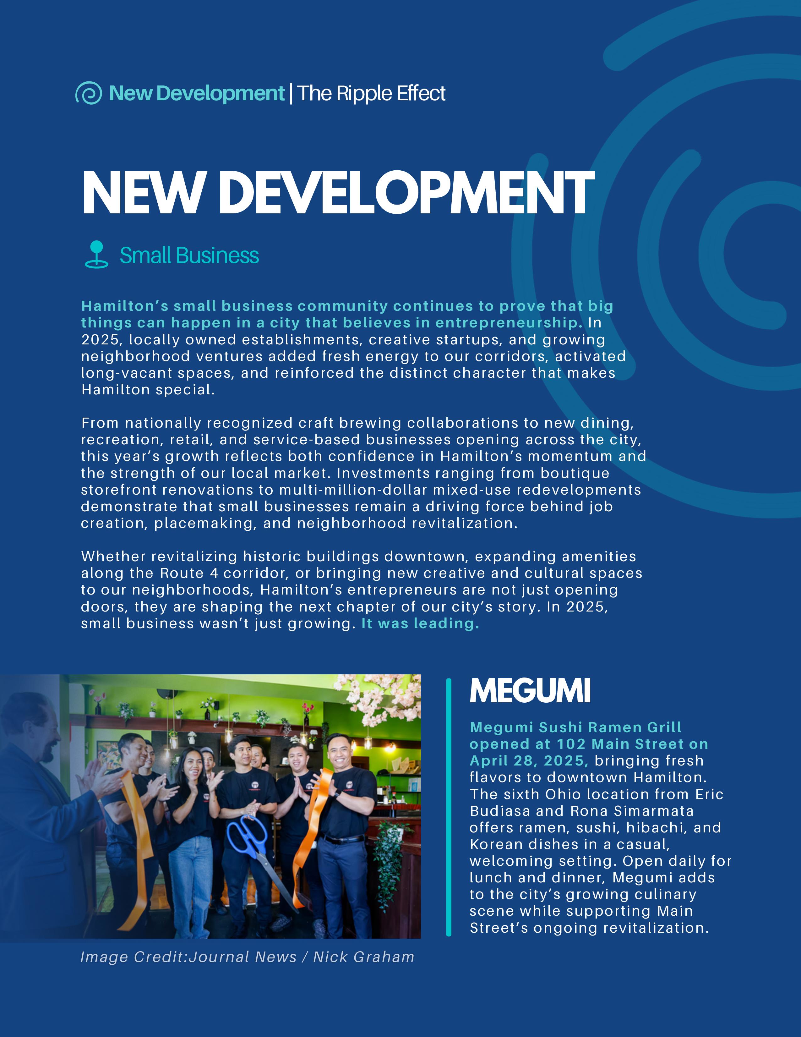Discover how Hamilton is growing, thriving, and shaping its future in The Ripple Effect. This annual report brings to life the city’s 2025 economic milestones—from exciting business expansions and innovative community projects to partnerships that are sparking new opportunities. Packed with stories of local success and bold initiatives, it’s a celebration of the energy, creativity, and collaboration that keep Hamilton moving forward.