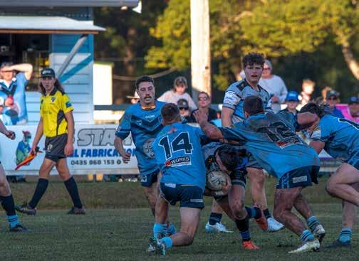 q Izaac Gaskin in action along the sideline in the local senior men’s rugby league competition.