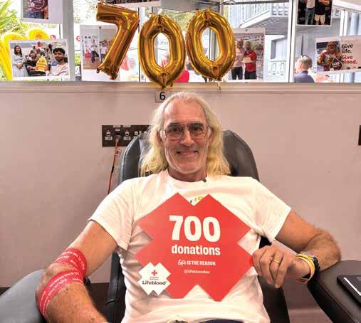 DUNBOGAN’S Bruce de Graaf celebrated his 700th donation at Lifeblood Port Macquarie on Friday, 20 February.