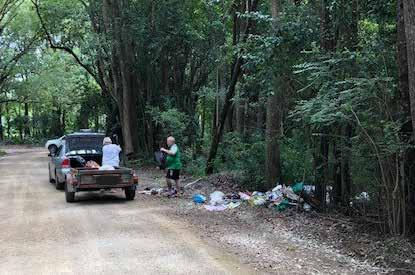 Reported by Nana Glen resident Catriona Slade, who witnessed the dumping and took photographs, the pair emptied rubbish from their trailer onto the side of the road and drove off.