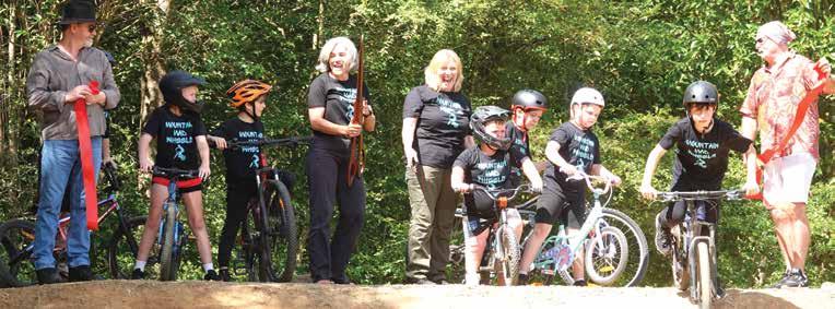 q Mayor Nikki Williams (centre, left) and Eastern Dorrigo Community Hall & Showground Facility Management Committee Chair Carole Cleary send the riders on their way at the official opening of the Ulong BMX track.