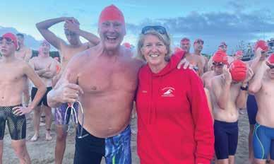 q Ian Hanson, father of Olympic swimmer Brooke Hanson and the swims’ ambassador with Sawtell Swim Coach Kim Roach.
