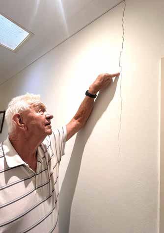 q Chris Ryland points to cracks that appeared in the wall of his house.