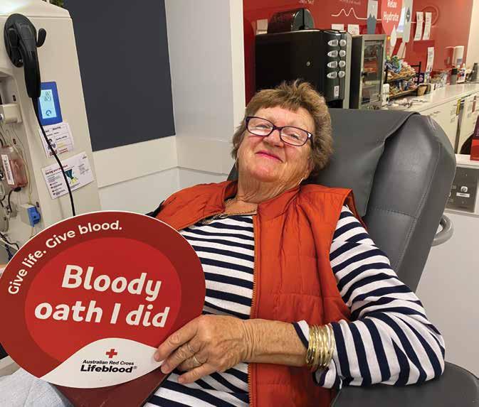 q Pamela Poulton began donating blood and plasma at the Australia Red Cross Blood Donation Centre in Coffs Plaza after the mad cow ban was lifted.