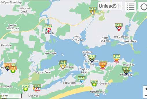 q Local map showing Unleaded Petrol prices as of Sunday 8 March 2026. Courtesy: Petrol Spy.