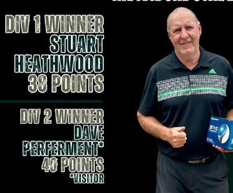 INDIVIDUAL STABLEFORD FIELD | 35 members & 3 visitors. DIVISION 1 (<15) | Winner Stuart Heathwood (15) 38 Points, Runner Up Robert Richardson (12) 37 Points, 3rd Place Glenn Davies (6) 35 Points DIVISION 2 (1636) | Winner Dave Perferment (22) [Muswellbrook] 40 Points, Runner Up Denis Crossman (19) 37 Points, 3rd Place Joseph Jackson (23) 36 Points BALL COMP | Darren Mathers (18) 36 Points, Greg Kellner (17) 35 Points, Banjo Rose (29) 35 Points, Michael Cairney (26) 34 Points, Daniel Szokolai (11) 34 Points, Michael Rose (5) 34 Points, Peter Nicholson (12) 33 Points, Michael Shanley (16) 32 Points, Brian Mowle (14) 32 Points & Benjamin Herden (20) 32 Points. NEAREST