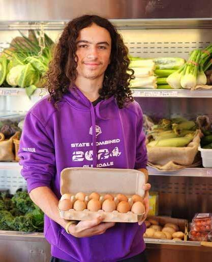 A member and volunteer at the Co-op, Max sells his eggs to help fund travel for State and National Athletics competitions, a grassroots example of community backing local ambition.