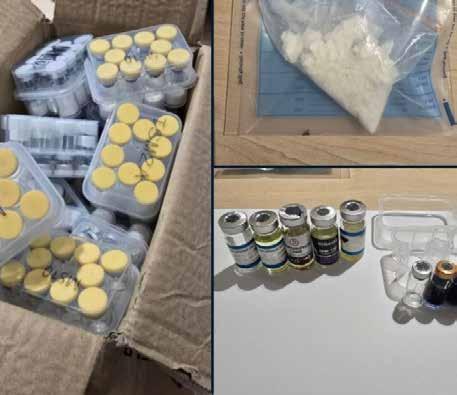 During the search, police allegedly located and seized 168 vials of steroids and a further $12,850 cash.