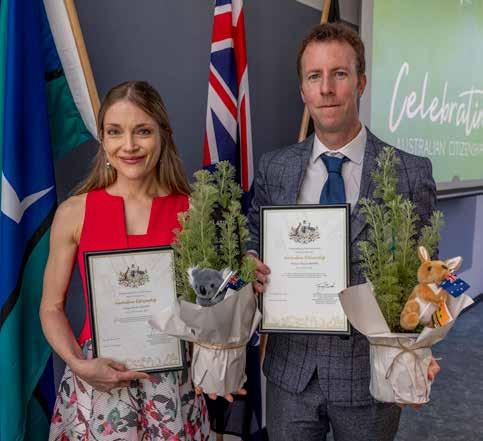 q President of the Australia Day Committee Luke Hester and Alison Penfold MP for Lyne.