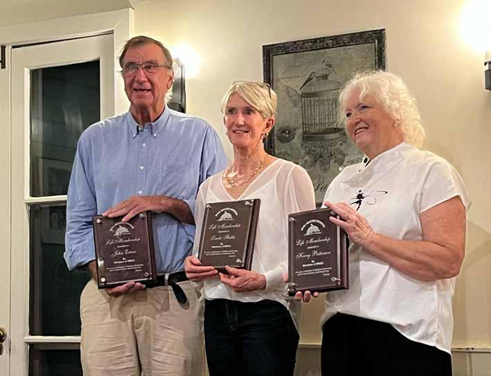 Linda Stubbs, who q Myall Masters’ new Life Member awardees John Estens, Linda Stubbs and Kerry Patterson receiving their commemorative plaques from the club.
