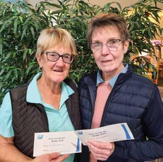 q Zone Councillor Bronwyn presents membership pins to Paula Carter (30 years) and Sue Dodds (20 years).