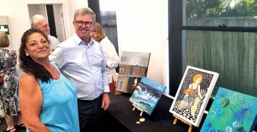 q MU3A artist Jeanette Hart shows Dr David Gillespie some of the artworks on display.