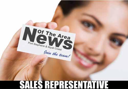 Email us: ads@newsofthearea.com.au Or phone us: (02) 4981 8882 Your Special Message Position Vacant: SALES REPRESENTATIVE: Port Stephens News Of The Area Myall Coast News Of The Area Permanent Part Time OR Full Time is available for the right person. Part of a small, family