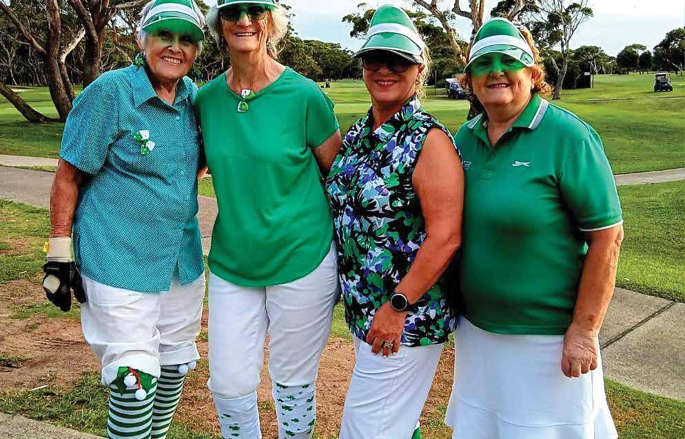 q Elsa Jones, Carol Wiggins, Liz Edmonds and Rosarie Mullins in their St Patrick's Day finery.
