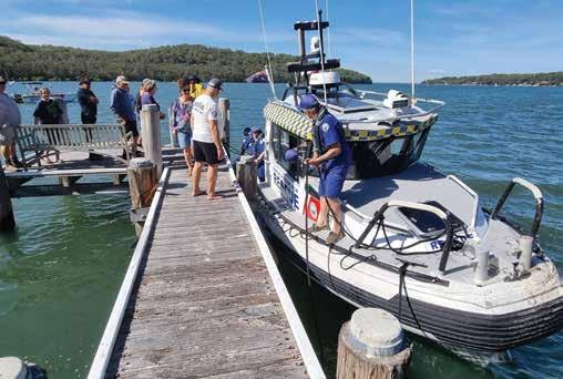 The small boat launch area at Cedar Park played host to the Marine Rescue landing craft, which was greeted by several Pindimar and Bundabah locals, including volunteer RFS brigade members.