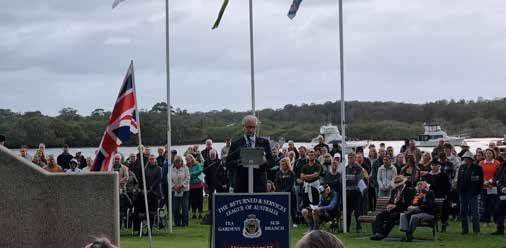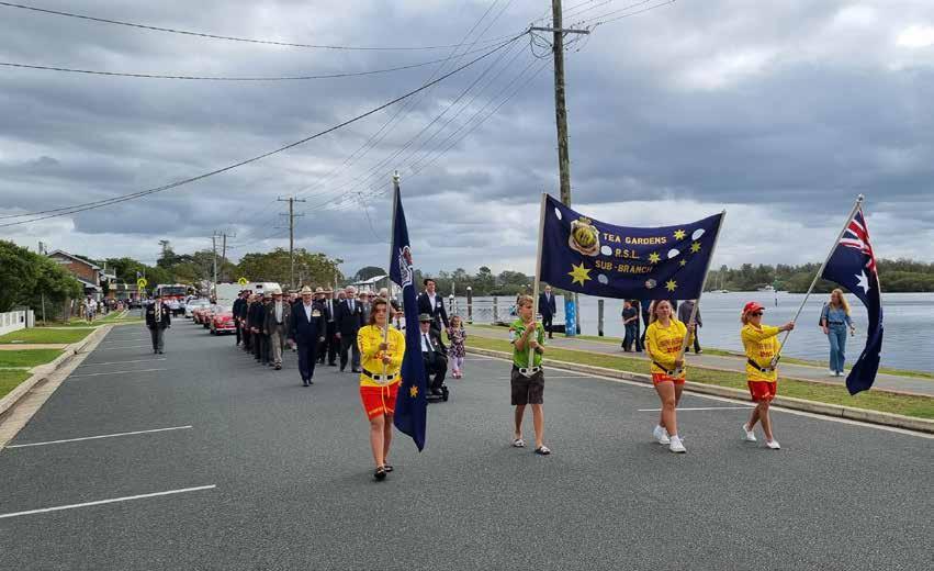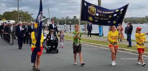 the march were RSL sub-Branch members and veterans, led by Peter CONTINUED Page 3 q Tea Gardens RSL Sub-Branch led the 10:30am march down Marine Drive. CONTINUED Page 2