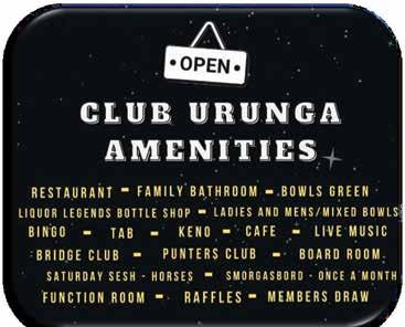Friday, 11 August 2023 CLUB URUNGA PH: 02 6655 6258 20 Orara St Urunga Function Room • Corporate, Weddings • Birthdays, Wakes ETC A VA I L ABL E T O H I R E C a l l t o e n q ui re Must be here to win From 6:30pm Vietnam Veterans Remember A Mate’s Ultimate Sacrifice Page 6 Page 10 Chris Aronsten, Live and Free