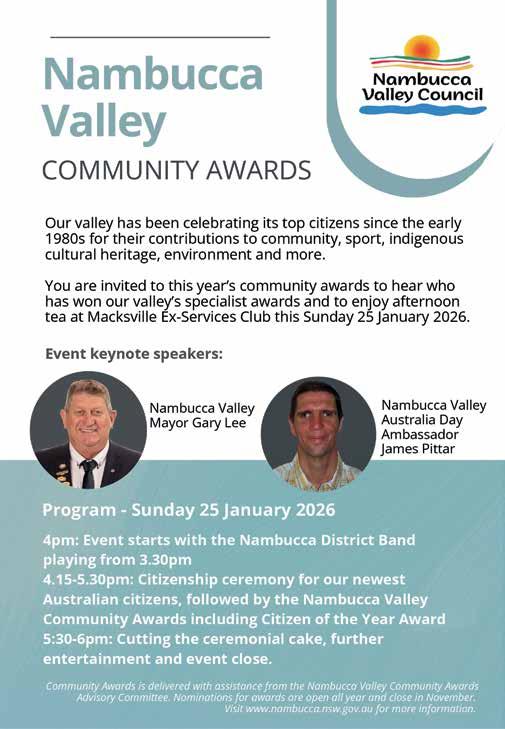 Any person may make a written submission in respect of the proposal which must be lodged with Council no later than 27 February 2026. Submissions must be addressed to the General Manager, Nambucca Valley Council, PO Box 177, Macksville NSW 2447 or sent by email to council@nambucca.nsw.gov.au