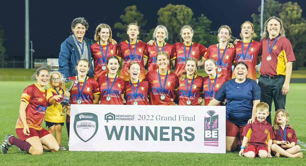 q The Urunga Raiders celebrate their grand final victory.
