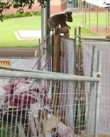 q A koala on a fence at the Tacking Point preschool construction site earlier this week. Picture: Jason Holten.