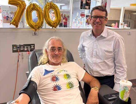 A celebration was held at Lifeblood’s Port Macquarie Donor Centre on Friday as Bruce completed his milestone donation, where he was joined by Benjamin Shuhyta who has made 500 donations, and Member for Port Macquarie Rob Dwyer.