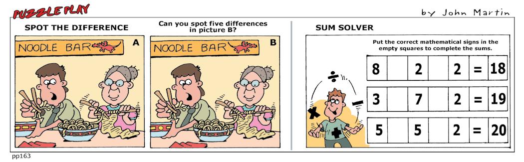 14 PORT STEPHENS NEWS OF THE AREA media@newsofthearea.com.au Thursday, 15 December 2022 PUZZLE TIDES NEWS OF THE AREA 7 6 8 1 2 7 5 6 9 8 7 5 7 2 6 3 5 4 6 1 3 1 5 7 4 7 6 5 3 8 9 2 1 8 2 9 4 1 7 3 6 5 1 5 3 2 6 9 7 4 8 9 1 4 6 2 3 8 5 7 6 3 5 7 8 4 2 1 9 7 8 2 9 5 1 6 3 4 2 6 1 8 7 5 4 9 3 5 9 7 3 4 6 1 8 2 3 4 8 1 9 2 5 7 6 EXPLORAWORD ©Auspac Media Can you find the hidden meaning in the picture puzzles below? HANG KERB LANE No. 177 1. 2. 1 2 3 4 5 6 7 8 9 10 11 12 13 14 15 16 17 18 19 20 21 22 23 24 25 26 27 28 29 30 31 32 Across 1 Dilate 4 Pastoral poems 8 Chat (coll) (abb) 10 Hoarder 12 Makes physically fit 14 Slide 17 Lament 19 Messages 20 Grasp again 22 Employs 23 Thinks highly of 27 Midday rest 29 Grip 30 Motto 31 Soak 32 Indigent Down 1 Bags 2 Boredom 3 Reluctant 5 Half (pfx) 6 Exercise 7 Warning instruments 9 Gentle winds 11 Occupant 13 Apprehends 15 Falsehoods 16 Essay on a theme 18 Original man 20 Rough 21 Til 24 Claw 25 Bird of prey 26 Cheerful 28 Heroic GRID F GOLD STAR CROSSWORD 12 X 12 !!!! : this not the page. Foley PO Box 8271 Bundall Qld Australia 4217 Telephone: (07) 5553 3200 Toll Free: 1 800 652 284 Fax: (07) 5553 3201 Auspac Media Email: auspac@auspacmedia.com.au Visit our site: www.auspacmedia.com.au The Feature People Classic Sudoku 177 Goldstar Crossword 17631 Explorawords 1. Hangover. 2. Kerbside lane. s t E pdowns Virtues, strive, rivet, tire, ire, re, r. alindromp E p uzzl E Too flat, urbane hen, a brutal foot Goldstar Crossword cross:a 1. Gamut, 4. Gallop, 8. Inlaid, 10. Meter, 12. Repeat, 14. Gorilla, 17. Sled, 19. Irately, 20. Rehangs, 22. Idol, 23. Hearten, 27. Bitter, 29. Place, 30. Select, 31. Entire, 32. Earth. d own: 1.