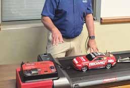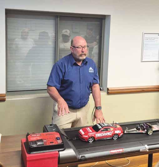 q Towing expert John Eggenhuizen using a model to demonstrate how to brake a towed caravan safely and effectively.
