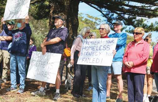 Kate Washington addressed the rally, stating that Port Stephens has no shelters for women and children fleeing domestic violence, very little emergency housing and no public housing built in the region for over a decade.