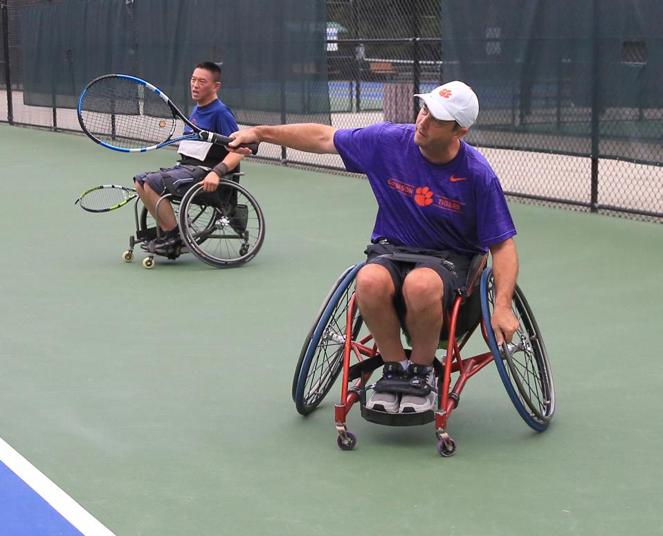 • The front wheels of the chair may touch the non-volley zone during a volley shot.