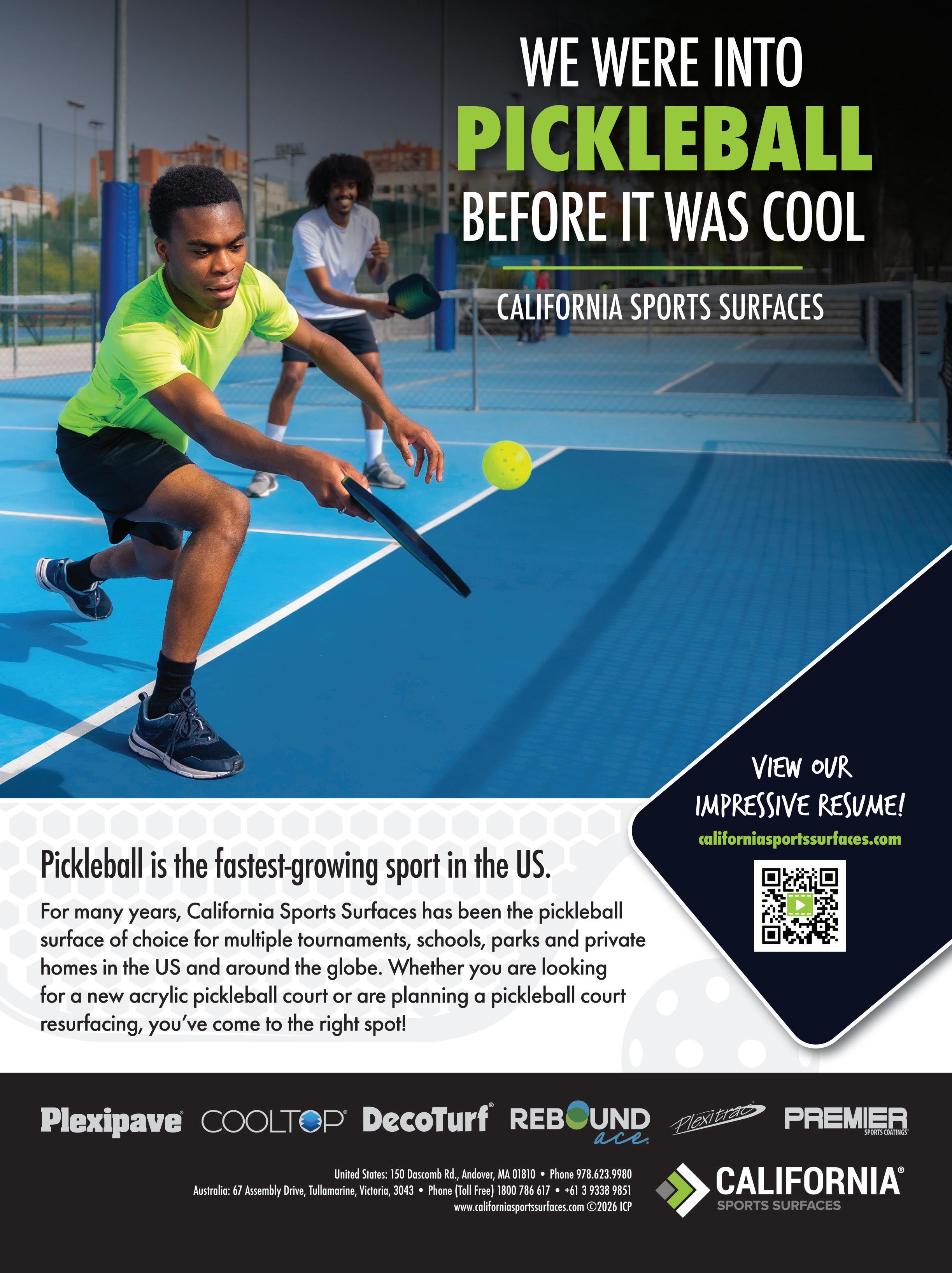 AT Sports is the official surface provider for the Professional Pickleball Registry. Through this partnership, AT Sports will support the PPR’s mission to educate and certify pickleball teaching professionals by providing industryleading surface expertise and innovation.