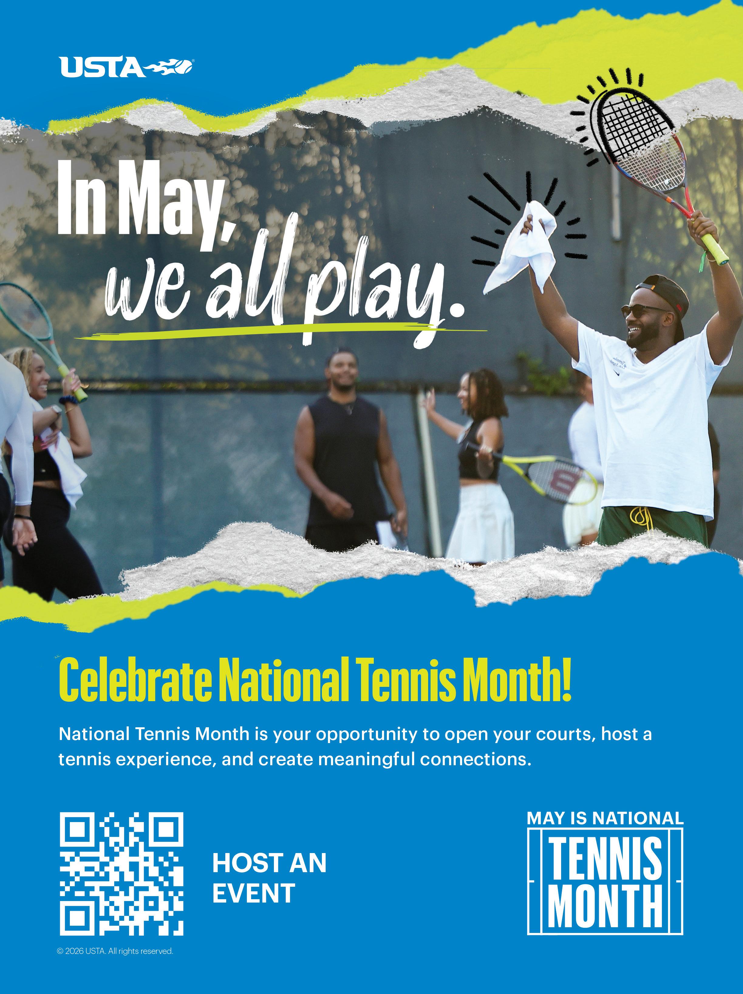 Celebrate tennis and fitness during National Hit to Be Fit (HTBF) Weekend, May 15 to 17, aligned with National Tennis Month. This will be the third year recognizing Hit to Be Fit, with the event expanding from one day to a full weekend. USTA Cardio Tennis Consultant Michele Krause is looking to have at least 300 sites around the country engaged in HTBF, with a flagship event at the USTA National Campus. For more information, visit www.cardiotennisinstructor.com.
