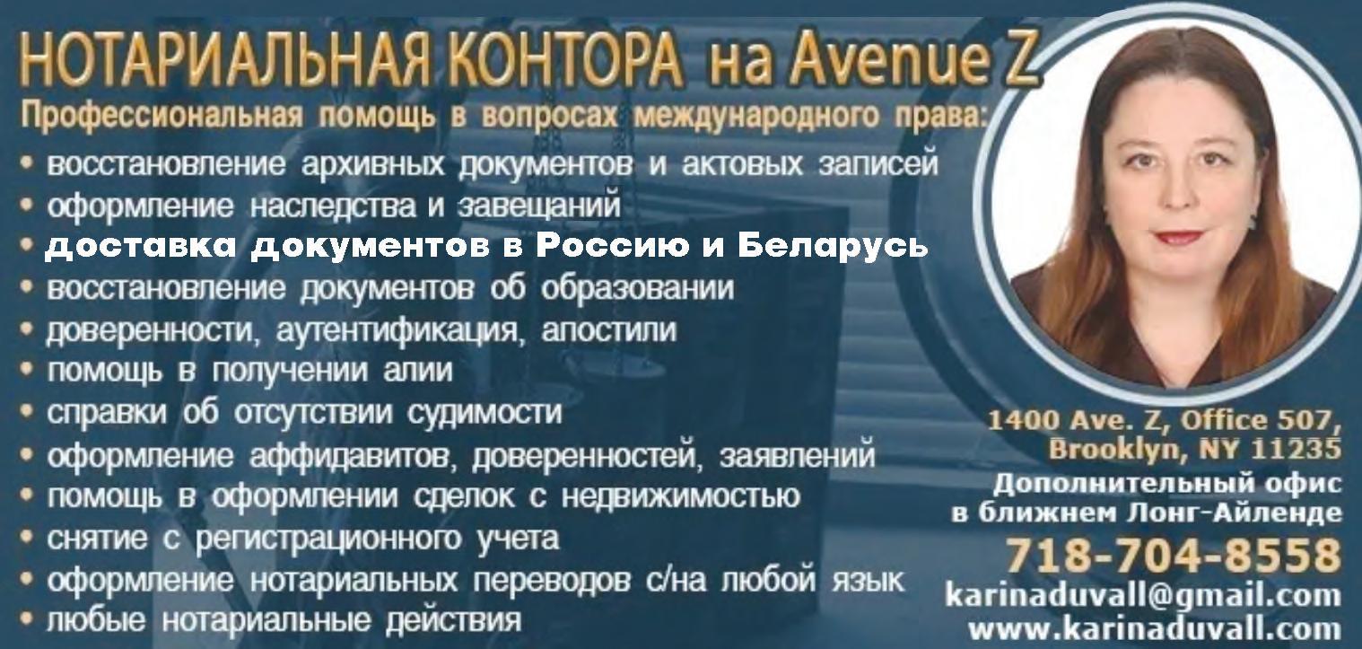 1990-õ ãîäîâ ÑØÀ ïðèíÿëè áîëåå äåñÿòêà áåæåíöåâ èç Ãâàòåìàëû, êîòîðûå âûäàâàëè ñåáÿ çà æåðòâ Ðåçíè â Äîñ Ýððåñå (Dos Erres Massacre). Òàê íàçûâàåòñÿ ìàññîâîå óáèéñòâî áîëåå 200 ìèðíûõ æèòåëåé Áåæåíåö áåæåíöó- ðîçíü • Ãðèí-êàðòû,âîññîåäèíåíèå ñåìüè,ãðàæäàíñòâî, ñîïðîâîæäåíèå íà èíòåðâüþ. • Îôîðìëåíèå áèçíåñîâ è îòêðûòèå êîðïîðàöèé • Äåëîâîå ïðàâî. Âñå âèäû êîíòðàêòîâ. • Ðàçâîäû • Äîâåðåííîñòè • Àïîñòèëü • Ïåðåâîäû • Çàâåùàíèÿ • Ðåøåíèå âñåõ âîïðîñîâ, ñâÿçàííûõ ñ íåäâèæèìîñòüþ Âû õîòèòå æèòü ëåãàëüíî â íàøåé ñòðàíå èììèãðàíòîâ? ÇÂÎÍÈÒÅ! ÊÎÍÑÓËÜÒÀÖÈß ÁÅÑÏËÀÒÍÎ! NEW YORK & NEW JERSEY Àäâîêàò Stella Grishpan sgrishpan@aim.com• (917) 568-2804 Åâãåíèé Íîâèöêèé