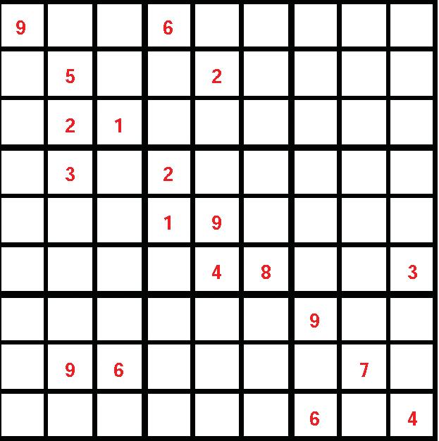 Çàïîëíèòå ïóñòûå êëåòêè öèôðàìè îò 1 äî N (N çàâèñèò îò ðàçìåðà ñåòêè) òàê, ÷òîáû â êàæäîé ñòðîêå è â êàæäîì ñòîëáöå âñå îíè áûëè ðàçëè÷íû.