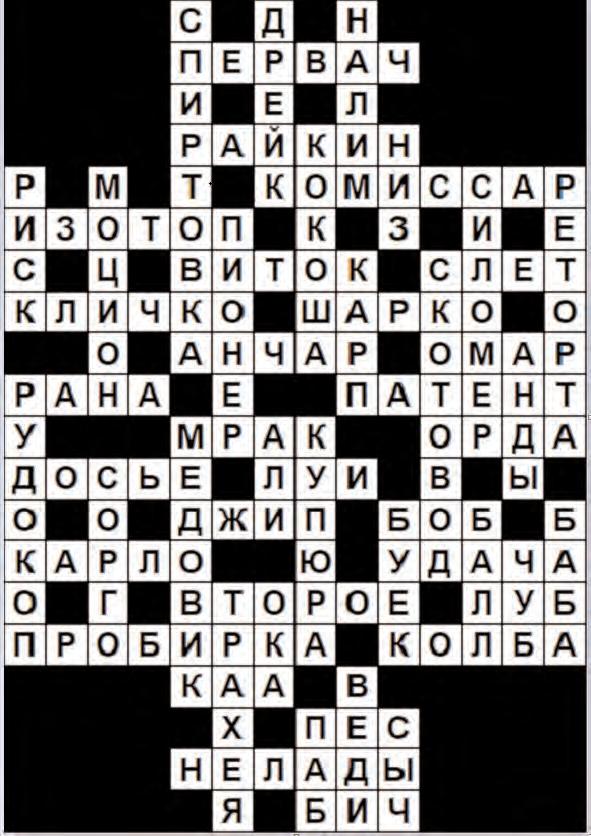 1. Êîðîòêàÿ ìàéêà. 5. ßðêèé îáðàç äëÿ ðîëè. 7. Î÷åíü ñìåøíî. 8.  ôóòáîëå - èãðà ðóêîé, â áàñêåòáîëå - èãðà íîãîé. 10. Âûñîöêèé ïðîñèò Çèíó íå òðîãàòü åãî, «êàêîé íè åñòü, à îí - ðîäíÿ». 12. Ëóè ... Ôþíåñ. 13. Ïåðüåâàÿ ëèêâèäàöèÿ. 16. Ñèëüíîå âîçáóæäåíèå, íåèñòîâñòâî. 17. Èìÿ âûäàþùåéñÿ ðóññêîé àêòðèñû Ðàíåâñêîé. 19. ×òî òðîãàåòñÿ, ãîñïîäà ïðèñÿæíûå çàñåäàòåëè, ïîñëå äîëãîãî áåçäåéñòâèÿ? 21. Êîëîêîëüíûé õîð. 22. Âðåäèòåëü, èç âûäåëåíèé êîòîðîãî ï÷åëà ìîæåò ïåðåðàáîòàòü ïàäåâûé ì¸ä. 23. Âðåìåííûé ñåíîâàë íà îòêðûòîì âîçäóõå. 26. Ýòîò êîìèññàð äåìîíñòðèðîâàë ïîä÷èí¸ííûì ôàëüøèâóþ «òðåòüþ ðóêó»: ïîäíèìàåøü å¸ ââåðõ, à íàñòîÿùåé ðóêîé òåì âðåìåíåì äîñòà¸øü ïèñòîëåò. 28. Îáðóñåâøàÿ ñïåöèôèêà. 29. Íà ÿçûêå âîåííûõ: âñ¸ òî, ÷òî íàõîäèòñÿ ñçàäè. 30. «Îáîðîòåíü» îðëà. 33. Ïÿòíàäöàòàÿ ñåðèÿ «áîíäèàíû» íàçûâàåòñÿ «... íà óáèéñòâî». 34. Áîðüáà çà óëó÷øåíèå ôèãóðû. 35. Ãàíí ñ «Îñòðîâà ñîêðîâèù». 39. «Èãðóøêà» öèðêîâîãî ñèëà÷à. 40. Áîåö ïîä «Ìóõîé». 42. «Ãîðäèåâ óçåë» ïî ñâåé ñóòè. 43. Øìîòêè, çàíîøåííûå äî äûð. 44.  êàêîì ìóçûêàëüíîì èíñòðóìåíòå òðóá áîëüøå, ÷åì âî âñ¸ì ñèìôîíè÷åñêîì îðêåñòðå? Ïî âåðòèêàëè: 1. Êàê çâàëè ëèäåðà ãàéäàðîâñêîé êîìàíäû, îêàçûâàâøåé áåñêîðûñòíóþ ïîìîùü ïîæèëûì ëþäÿì? 2. ×åãî íå «õâàòàëî» Àðõèìåäó, ÷òîáû «ïåðåâåðíóòü Çåìëþ»? 3. «... óçíàë ãàñêîíöà Äå Òðåâèëÿ». 4. Ãîðîä, â êîòîðîì íàõîäèòñÿ ìóçåé Æàííû ä`Àðê. 5. «Ñàóíäòðåê» ê íàãðàæäåíèþ. 6. ... Áàòèñò Ïîêëåí Ìîëüåð. 9. Âåðíûé ñâîåé áëàãîâåðíîé. 11. Ñëåçîòî÷èâîå «îðóæèå». 14. ×òî Âåùèé Îëåã ïðèáèë íà âðàòà Öàðüãðàäà? 15. Òàíåö, â êîòîðûé ïóñêàþòñÿ. 17. Ãåíåðàëüíûé ñïîíñîð Çîëóøêè. 18. Èìÿ ôðàíöóçñêîãî ïåâöà ïî ôàìèëèè Ìîíòàí. 20. Èíäååö, ïóãàâøèé Òîìà è Ãåêà. 24. Ðîùà äëÿ øåëêîïðÿäà. 25. «Ïðîôñîþç» êàñêàä¸ðîâ. 26. «Èñïûòàòåëü» ëîøàäåé. 27. Áðåõíÿ âñ¸ ýòî! 30. Îùóùåíèå ðàñòóùèõ ðîãîâ. 31. Ïàëî÷êà äëÿ ãðóíòîâêè, ñìåøèâàíèÿ êðàñîê, î÷èùåíèÿ ïàëèòðû. 32. Õóäîæíèê «íà ñëóæáå ó Äèñíåÿ». 36. Ñàìîå «ìóìèôèöèðîâàííîå» ãîñóäàðñòâî íà Çåìëå. 37. Ñòåïü, àðåíà âåñòåðíîâ. 38. Ñîîðóæåíèå, âûñòðàèâàåìîå íà ôóòáîëüíîì ïîëå. 41. Þáêà, îòêðûâàþùàÿ ìóæñêèå íîãè. ÎÒÂÅÒÛ íà ñòð. 42