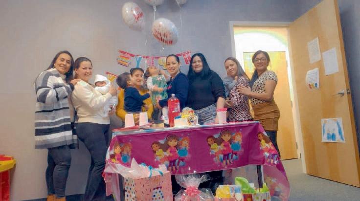 Finding community: A birthday party is celebrated during one of Family Service Association’s bilingual group meetings.