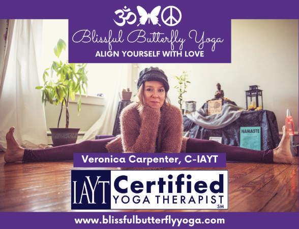 Veronica Carpenter, Certified Yoga Therapist, helps anxious humans find balance in practical & playful ways to support self-love & stress relief. She is a solopreneur residing in Audubon NJ teaching through a trauma-informed lens under the name Blissful Butterfly Yoga.
