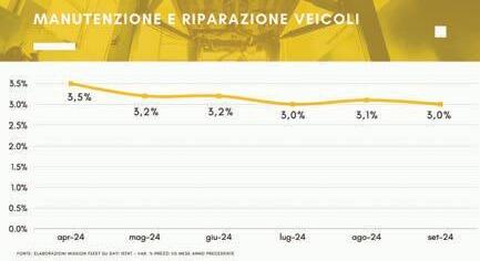 Iprezzidellemanutenzionidiveicolisonoin costanteaumento.Tuttavia,seneiprimidue mesidell’annogliaumentieranointornoal4%, giàadaprilel’aumentoèstatodel3,5%. Successivamentemaggioegiugnohanno registratoincrementidel3,2%eperfinire,ad agostoesettembregliaumentisonostatipiù contenuti:3,1%e3%.Gliinterventisono strettamentecollegatiall’usodell’auto.Più chilometrisifanno,piùaumentailricorsoalle officine.Perquantoriguardagliordinidiauto innoleggioalungotermine,siregistracheuno sudueprevedeunchilometraggioannuale maggioredi30.000km.