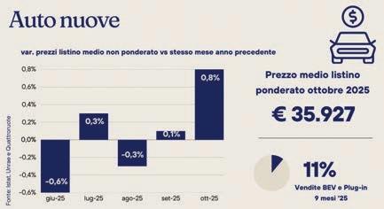 Il listino medio ponderato delle auto nuove, a ottobre è stato di € 35.927. Un valore calcolato sui dati delle immatricolazioni mensili che comprende l’IVA, ma non gli sconti al cliente e gli equipaggiamenti opzionali.