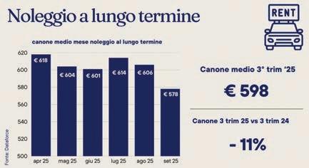rispetto a 6 anni fa: 1,6 milioni di targhe nel 2019, meno di 1,2 nel 2025), il noleggio a lungo termine fa registrare un confortante +12,8% sul 2024 e un dignitoso +2,1% per il canale degli acquisti diretti fleet, cui si aggiunge un +9,2% del noleggio
