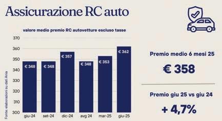 Considerando tutto il 2024 il premio medio è stato pari a 348 euro. A partire da giugno 2024 il premio è stato sempre in crescita fino a raggiungere il picco di 357 euro a dicembre. Poi il premio è sceso di 4 euro a marzo 2025 (€ 353) per risalire a giugno a 362 €.
