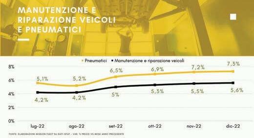 Ilnoleggioalungotermineèparticolarmente colpitoinquantoleproroghedeicontratti generanorichiesteditrenigommeaggiuntive. Iprezzidellemanutenzionieriparazionidei veicolisonocresciutinelsecondosemestre mediamentedel5%.Imagazzinidelleofficine, acausadellascarsitàdiprodotto,fannofatica arifornirsideipezzidiricambionecessarialle richiestedellaclientela.