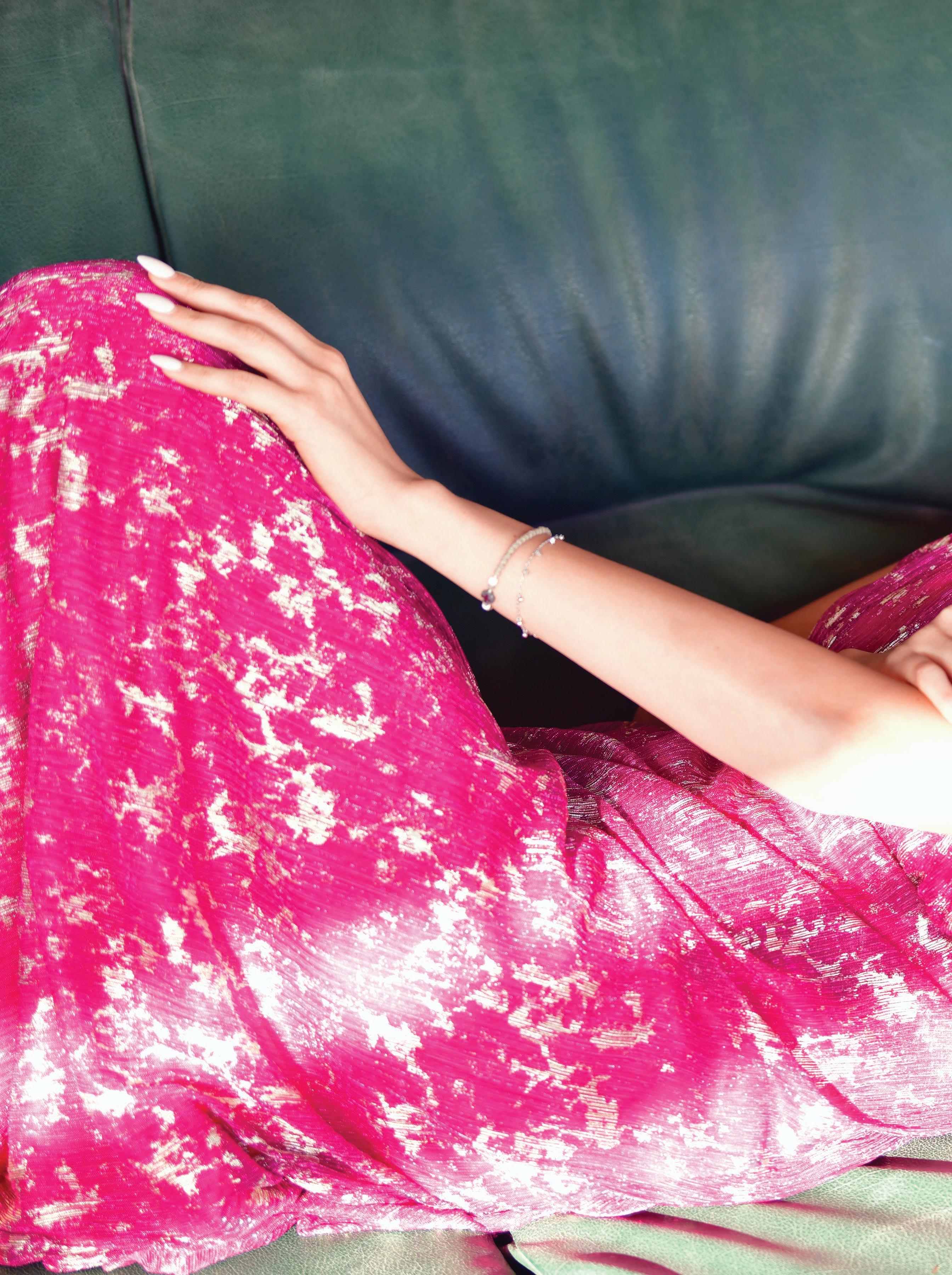 Pétillante et vivante, Namrata a décidé un beau jour de faire une pause dans sa vie professionnelle. « Depuis la maternelle je suis sous pression, et puis il y a eu le CPE… Le QEC ensuite le bar reau… J’ai été avoué pendant 14 ans, j’ai travaillé à la Commission de Droits de l’Homme de février 2018 à 2022. » Après une période difficile qui l’a fait vite grandir, « avec un mari en politique et toutes les déconvenues qui vont avec », cette pause elle l’a consacré entièrement à peaufiner la décoration intérieure et extérieure de sa maison et il faut avouer que la jeune femme a un goût exquis pour la décoration. Passion née depuis toujours pour la déco, elle avait même gagné un concours en art créatif, Namrata avait déjà une idée en tête, « le style de Dubai, avec de la doru re, du blanc épuré, du marbre aussi. » C’est alors que Namrata commence à imaginer la maison de ses rêves, passe des commandes à l’étranger pour avoir ce qu’elle souhaite, va dans ses ma