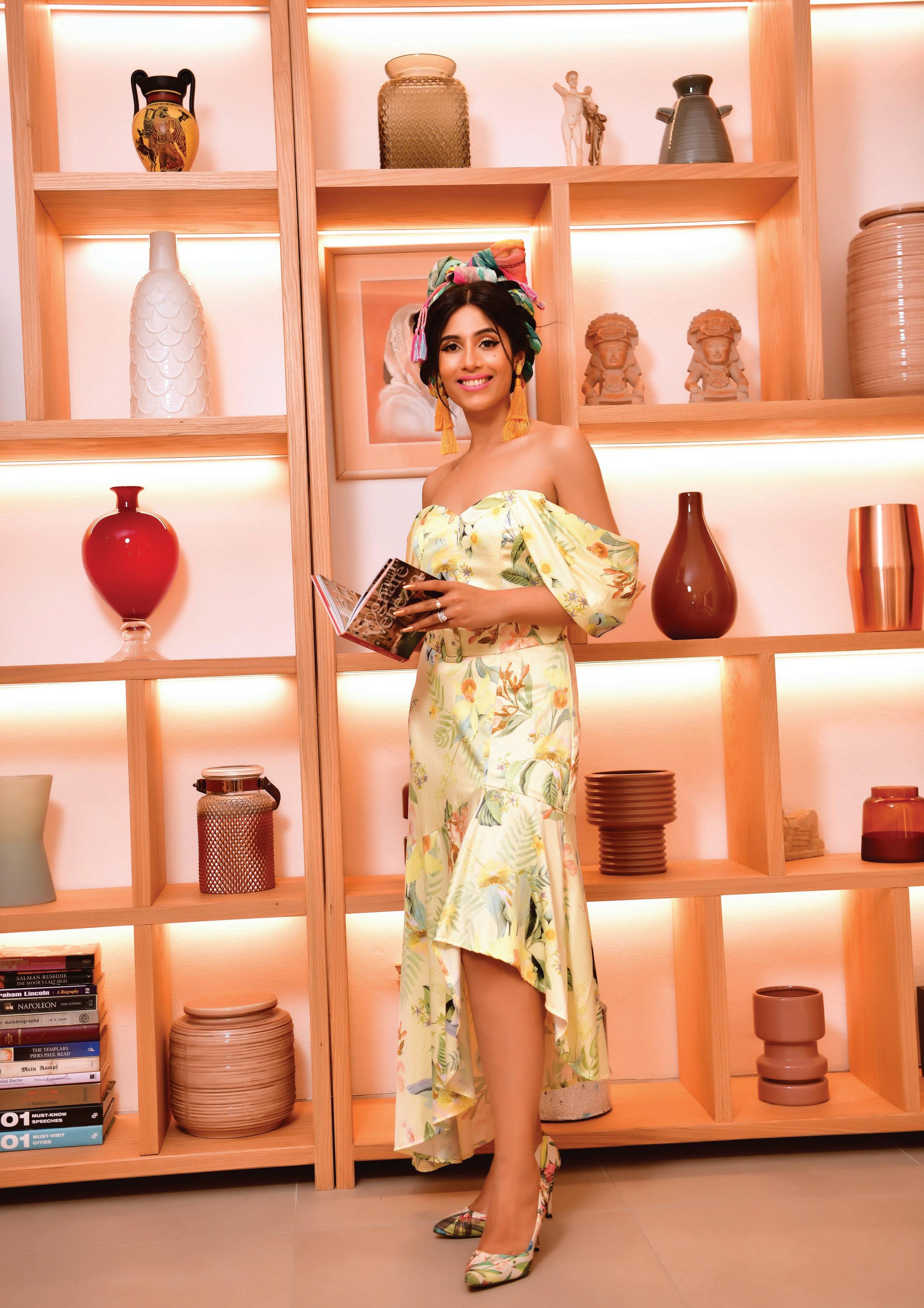 Namrata s’épanoui de plus en plus et commence à choisir alors stratégique ment ses meubles avec des tissus et des formes à la fois sophistiqués et accue illants, parfaits pour se ressourcer seul, recevoir des convives ou pour passer un moment simple et relaxant en famille. Petit à petit elle créé un foyer chaleureux pour elle, son mari Sanjeev et leur très cher chien Fluffy. « Il est venu dans nos vie en 2017 et nous l’avons accueilli. C’était à un moment où mon mari rent rait tard le soir et quand je me trouvais seule à la maison. Il est plus qu’un com pagnon, c’est notre enfant ! J’aimerais beaucoup lui donner un compagnon et je rêve d’avoir un corgi ! »