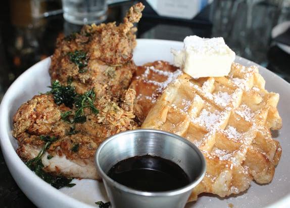 Meanwhile, I absolutely loved the super-crispy, deliciously different fried chicken & sugar waffles I ordered. The two big waffles were topped with pow dered sugar and butter (although I didn’t really need either one) and served with a side of bourbon maple syrup — the syrup was a game-changer for yours truly. The fried chicken on the bone isn’t typical of other places. Instead, it has a Caribbean-spiced twist that I totally ate up! (Pun intended? Maybe!)