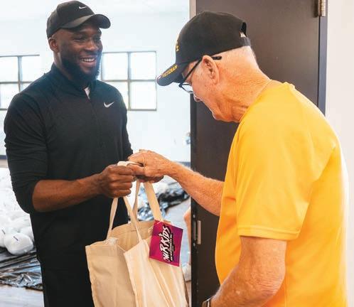 Former Liberty Middle School standout and NFL wide receiver Nelson Agholor helped make Thanksgiving 2025 a little brighter for a lot of area residents who might not have had a Thanksgiving turkey this year when he donated 500 turkeys at the Wiregrass Ranch Sports Campus the day before the holiday. (Inset) Nelson Agholor on the cover of the Neighborhood News after he helped the Philadelphia Eagles win their first-ever Super Bowl title back in 2018.