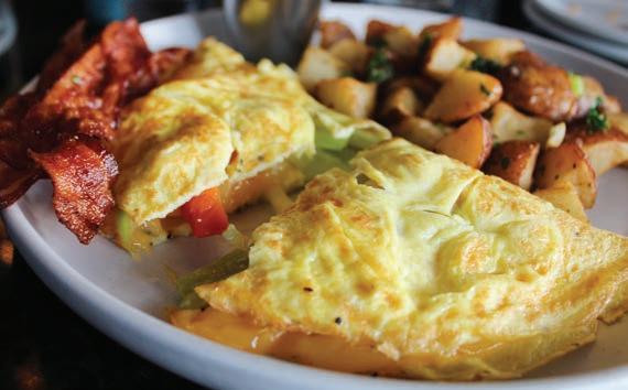 chimichurri sauce and mamposteao rice); a fourstack of pancakes (bananas Foster, pecan or plain); and the Mallorca — scrambled eggs, bacon, ham, white cheddar and powdered sugar.