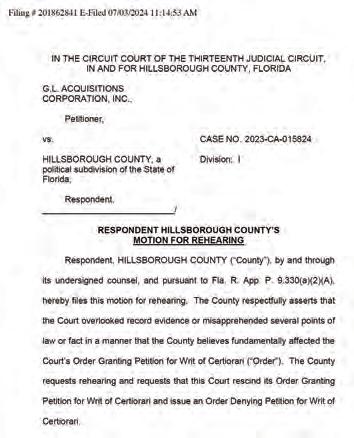But, GL Homes found another option. In October of last year, the home builder appealed the county commission’s denial of the rezoning request to Hillsborough County Circuit Judge Paul Huey.